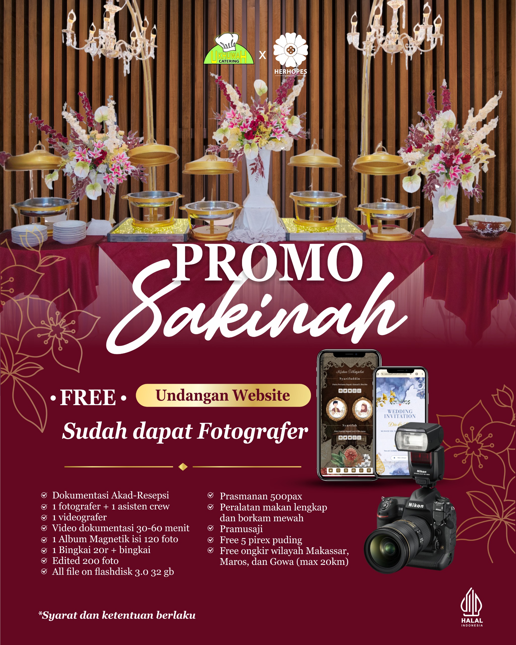Durasi pelayanan Catering Ukhuwah maksimal hingga 7 jam pelayanan, dengan syarat dan ketentuan yang berlaku.
